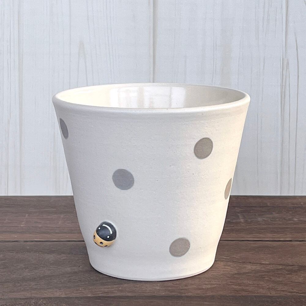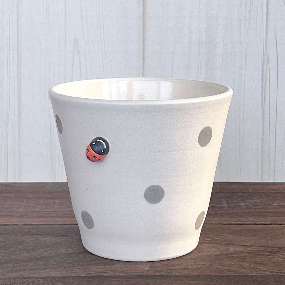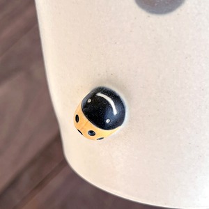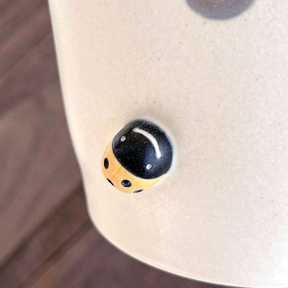 ※てんとう虫が付いている事により、通常の焼き物に比べ、焼成時の歪みが非常に出やすい作品です。また、その時の焼成によって貫入の入り方も違っています。そういった違いも、焼き物のひとつの“味わい”として捉えていただけたらと思います。