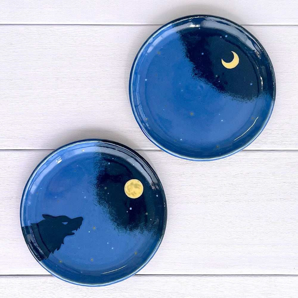 夜空に月が映える、使いやすいサイズのお皿です。取り皿にちょうど良い大きさ。